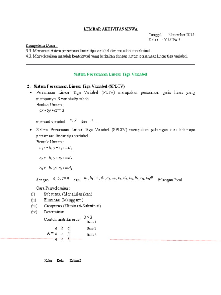 Sistem Persamaan Linear Tiga Variabel Metode Eliminasi