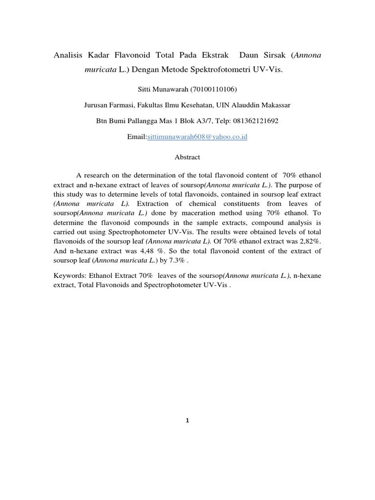 Analisis Kadar Flavonoid Total Pada Ekstrak Daun Sirsak